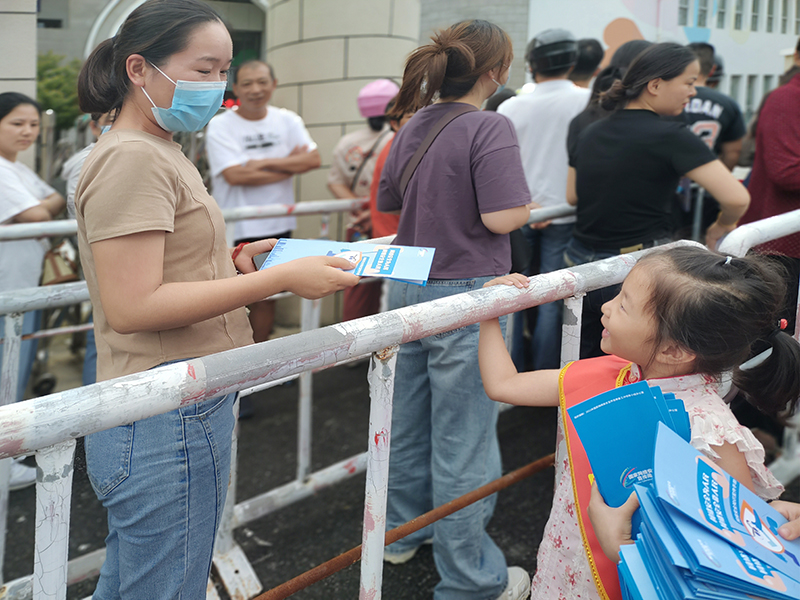 孩子们把国家网络安全宣传周筹备工作领导小组办公室统一印发的宣传册送到家长手中