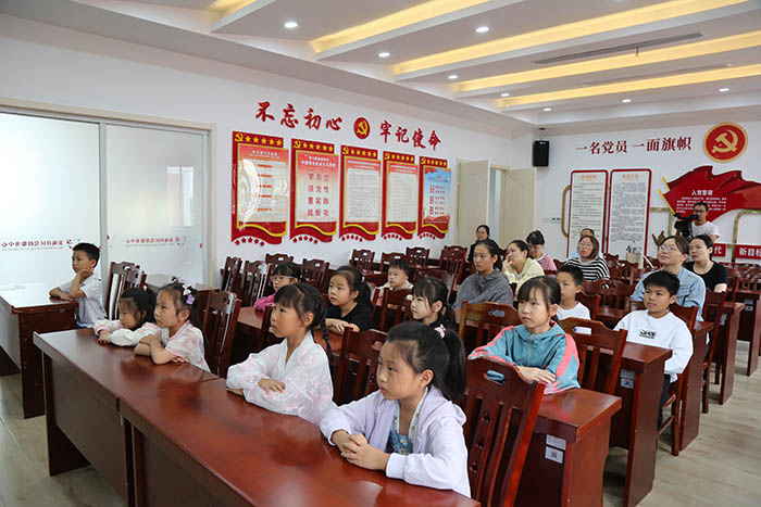 开班仪式上,泰州市少年宫群文活动部主任汤颖讲话,她说:“2020年起,泰州市少年宫启动了“乐学课堂”,旨在通过开展传统文化亲子课程,将优质的校外教育资源送至周边乡镇社区,在丰富社区儿童课余文化生活的同时,激发孩子们对传统文化的热爱及情感,提高他们的综合素养。本期茶艺课堂共计10次课,通过系统的课程学习,在孩子们心中种下一颗‘茶’文化种子,潜移默化地培养他们举止有度、行事有礼的行为习惯。”