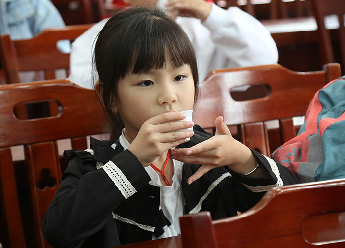 课堂上,来自少年宫茶艺专业教师马晓霞首先用通俗易懂的语言讲述了茶的分类、茶的演变、茶具的种类,让孩子们对茶文化有了初步的了解;接着,在她的带领下,孩子们学习了鞠躬礼、叩首礼、奉茶礼等喝茶的礼仪。随后,马老师边示范边讲解了茶道六君子、盖碗、公道杯、品茗杯、茶叶罐、茶巾等器具的使用方法和摆放要求。