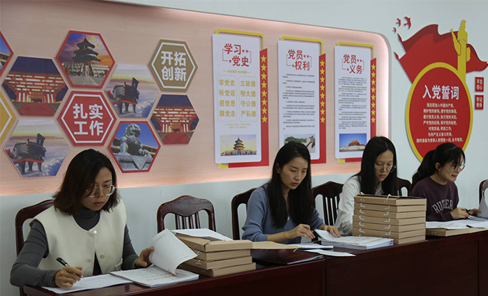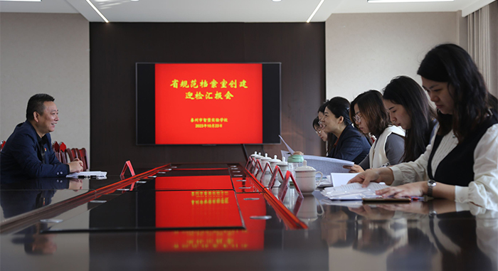 袁莉一行听取了学校创建“江苏省规范档案室”工作汇报,按照《江苏省机关团体企业事业单位档案工作检查评价细则》,从体制机制建设、基础设施建设、基础业务建设、档案信息化建设和档案特色工作五大方面百条细则,对该校的创建工作逐一量化评分。