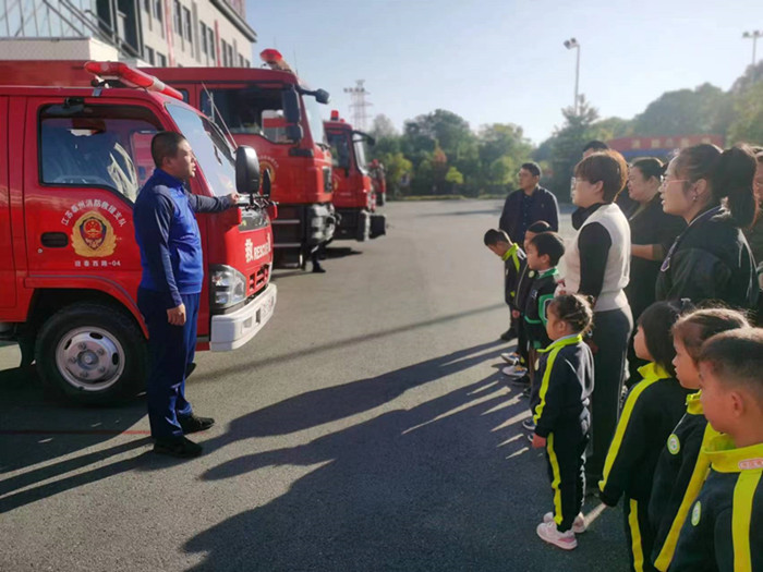 为了进一步加强师生的消防安全教育,提高自救、自护的防范能力与意识。11月7日,城东附幼邀请了海陵区消防救援大队的消防员给教职工和幼儿介绍消防知识、消防设备,带领大班幼儿实地参观海陵区消防救援站,“零距离”感受别样的消防课堂。