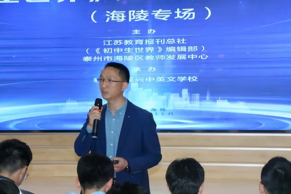 秋雨寒意浓,送教暖人心。11月9日,由《初中生世界》编辑部和海陵区教师发展中心主办的校园公益送教活动在泰州市民兴中英文学校阶梯教室举行,参加此次盛会的有来自海陵区各年级语文备课组长、海陵区2015年后入职教师、海陵区初中语文名师工作室成员、海陵区乡村骨干教师培育站学员以及泰州市民兴中英文学校初中部全体语文教师。泰州市民兴中英文学校副校长王毅主持活动,他向与会人员隆重介绍了送教专家韦存和老师,同时对海陵区初中语文研训员钱萍及各位语文老师的到来表示了热烈的欢迎。