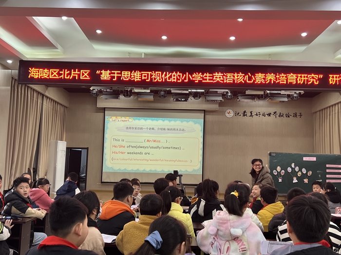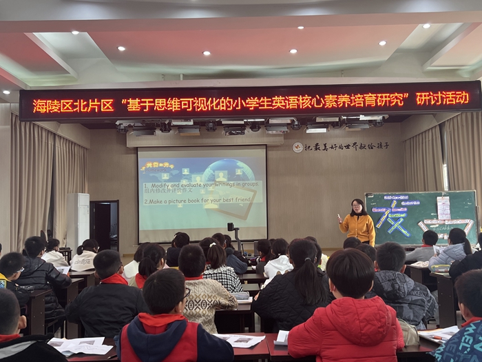 11月21日,以“基于思维可视化的小学生英语核心素养培育研究”为主题的区级英语教研活动在泰州市大浦教育集团本部校区成功举办,海陵区教师发展中心小学英语研训员吉桂凤、区各校英语教师代表参加了本次活动。