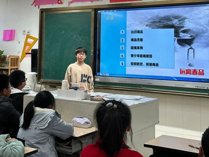 班会课上,各班播放了《健康人生 绿色无毒》禁毒警示片。学生们了解到新型毒品的伪装性和诱惑性极高,可伪装成青少年喜欢的零食、饮料等,所以对辨识能力较低的青少年危害极大。同时,班主任结合图片和案例,深入浅出地讲解了毒品对个人、家庭和社会的危害,让同学们意识到禁毒的重要性和必要性。