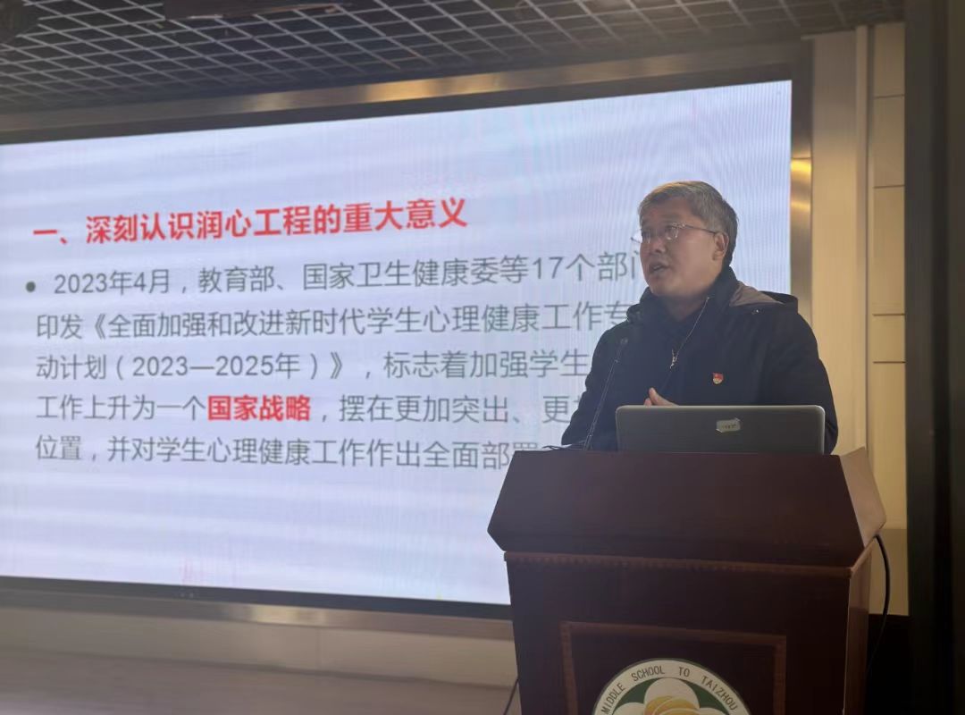 1月28-29日,为推动寒假关爱青少年生命健康“润心”行动走深走实,学校领导班子、所有班主任、中层干部和骨干教师线下参加泰州市中小学(幼儿园)校长、班主任心理健康教育全员培训,共同学习心理健康工作的新思路和新方法。通过培训,学校将不断健全健康教育、临测预警、咨询服务、干预处置“四位一体”的学生心理健康工作体系,完善学校家庭、社会和相关部门协同联动的学生心理健康工作格局,不断提升教师心理健康教育和心理危机干预能力,坚持“四个结合”的实施原则,为推动心理健康教育与一线教育教学密切结合而不断努力。