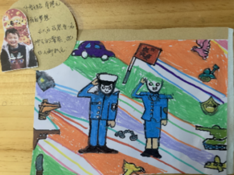 活动后,孩子们用自己擅长的方式,描绘出自己心目中的警察,为警察送上一份自己的心意。在孩子们小小的世界里,最大的英雄就是警察。通过活动在孩子们幼小的心灵种下了理想的种子,期待一颗颗正义善良的种子慢慢发芽、茁壮成长!