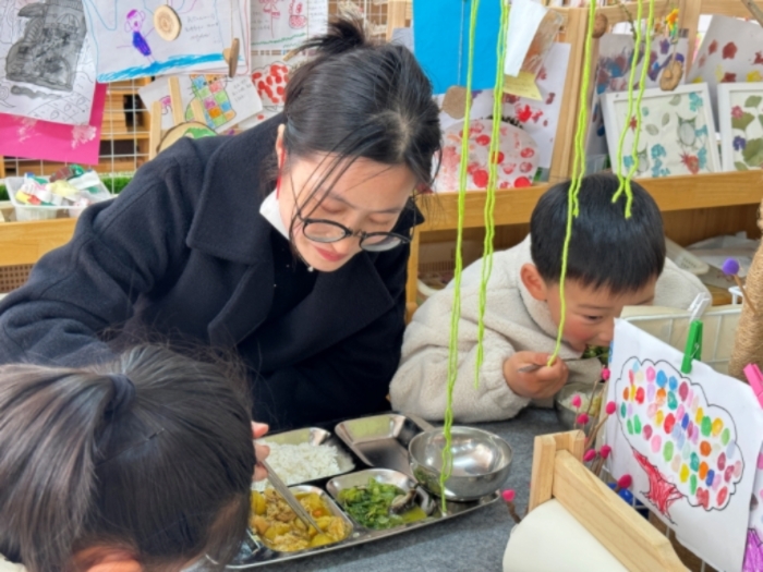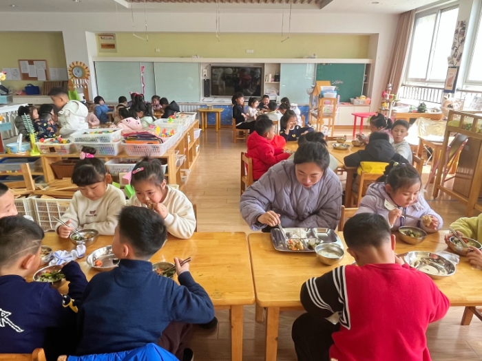 随后,家长代表深入走进各年龄阶段班级,与幼儿共同品尝色香味俱全的午餐,亲身体验幼儿在园自主进餐流程、进餐规则和进餐氛围,体验食物带来的味蕾绽放,观察幼儿在自我服务与服务他人时散发出的热情礼貌,“零距离”感受《幼儿园保育教育质量评估指南》精神下幼儿园保教质量的落地。