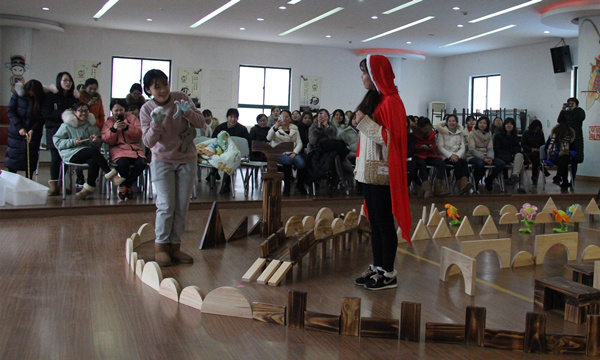 市幼儿园举行大型建构游戏实战演练 来源:泰州市幼儿园 作者:李倩 秦丽梅 发布时间:2018-01-05 浏览次数: 次 【字体:小 大】 1月3日中午,市幼儿园举行建构游戏实战演练活动,全体教师参加了活动。活动分为三个场地进行,老师们运用“平铺、延长、垒高、盖顶、围合、架高”等搭建方法的搭建了《小红帽》《母鸡萝丝去散步》和《三只小猪》童心故事的场景,并用搭建的场景开设了研究课。副园长宋友岚对活动做了点评,她说:“老师们通过亲手操作更好地了解了建构游戏的方法,开拓了的思路,更丰富了课程内容,使课堂更具真实感,幼儿们会更喜欢。” 分享到: 【打印正文】 相关内容