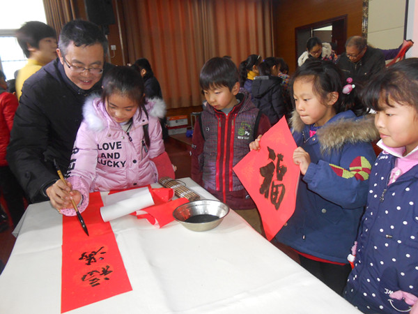 活动表彰了在书画方面取得优秀成绩的老师的学生,马玉春一行还为困境学生赠送了慰问品,勉励他们勤奋学习,苦练基本功,早出成绩!随后,20多位老书画家或亲自挥毫或手把手指导孩子们写对联,把对联赠送给与会的家长代表。学生柳欣蓉兴奋地说:“我在苏陈实小学习了三年毛笔字,发表了六七幅作品,多亏市书协的爷爷奶奶的帮助和指导,今后我要更加努力,争取在书画方面取得更好的成绩。”