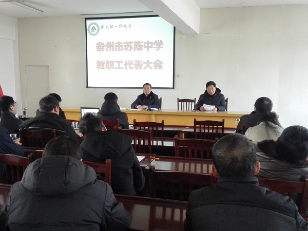 苏陈中学召开教职工代表大会 讨论审议经费使用方案等 来源:苏陈中学 作者:钱凤萍 发布时间:2018-01-09 浏览次数: 次 【字体:小 大】 1月8日下午,苏陈中学召开教职工代表大会。校领导班子全体成员及教职工代表参加会议。会议审议通过了《苏陈中学工会经费使用暂行办法》《苏陈中学福利采购发放方案》。教职工大会的召开,体现了学校管理的民主公开,对构建和谐校园起到了很好的促进作用。 分享到: 【打印正文】 相关内容