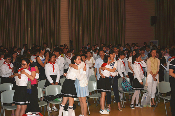 “队员述心声”、“老师对我说”、“父母对我说”……孩子们为老师献上了感恩的鲜花,给父母一个深情感激的拥抱,他们在祝福中展望未来,在音乐中共话送别。