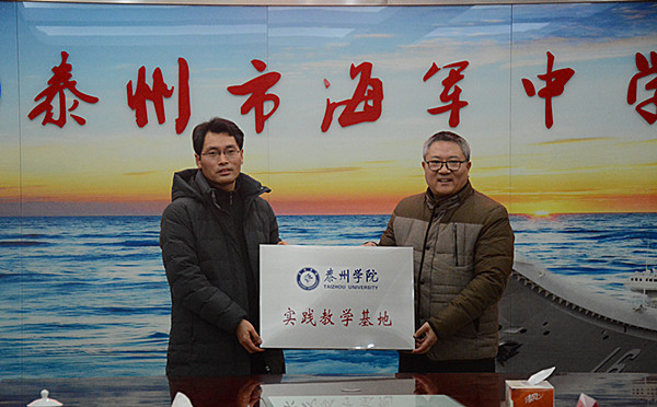 泰州市海军中学成为泰州学院实践教学基地。1月29日下午,海军中学与泰州学院举行了签约仪式,仪式在海军中学举行,泰州学院教务处处长杨俊林一行五人和海军中学的校领导参加了仪式。