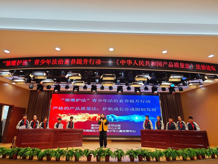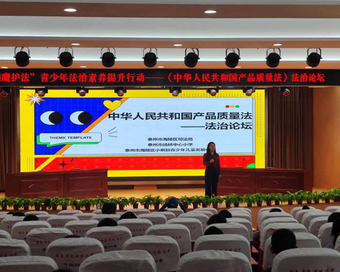 为扎实推进“八五”普法工作,进一步提升青少年法治思维和法治素养,增强青少年学法尊法守法用法的意识,近日,泰州市扬桥中心小学与泰州市海陵区法治宣传教育领导小组办公室联合策划并开展了以《中华人民共和国产品质量法》为主题的“雏鹰护法”青少年法治素养提升行动系列活动。