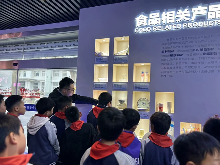 在学生对《中华人民共和国产品质量法》有所了解的基础上,四(3)班的学生走进了泰州市质量安全科普馆,进行了一次意义非凡的参观学习活动。孩子们化身为小小质检员,深入各个主题展厅,观看科普视频,了解食品、燃气具等产品质量安全知识。