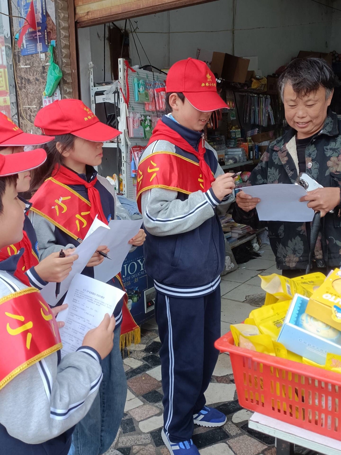 在参观质量安全科普馆之后,孩子们还走进北山社区,进行“产品质量法”的法治宣传。他们手持宣传资料和调查问卷,走进一家家商铺,向店主们耐心讲解产品质量法的重要意义和具体内容。在街头,他们也积极与市民互动,让市民们更加深入地了解了产品质量法对日常生活的影响。