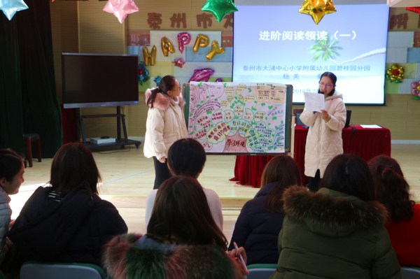 本学期大浦附幼结合《省教育厅关于加强学前教育教研工作的意见》积极开展“进阶阅读”活动。所谓“进阶阅读”是分阶段推进全园教师阅读。第一阶段由业务园长牵头,带领教研室成员选择本学期专业书籍进行阅读,第二阶段组建阅读小队,分章节进行领读,并利用微信公众号定期发布阅读信息,第三阶段组织全园教师在研读的基础上进行实践,通过实践来呈现阅读成效。