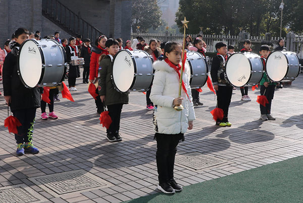 “出旗”!上午九点,随着大队辅导员的一声令下,大浦小学校雏鹰鼓号队的队员奏响了嘹亮的《出旗曲》,全体队员庄严参加了新学期第一次升旗仪式,校长郑晓彤作“胸怀爱国心,共筑中国梦”国旗下讲话。他勉励队员们爱祖国要从点滴做起,从小刻苦学习,遵守纪律,争做文明少年。接着,邀请而来的交警大队警官王禹给队员们讲“交通安全”,他希望全体队员在校外遵守交通规则,为泰州市民做好文明小表率!