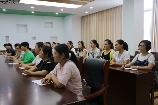 8月25日上午,大浦附幼对新聘的保育员进行培训,新聘保育员精神饱满、全神贯注,用笔记录着保育工作要点,积极回答问题。