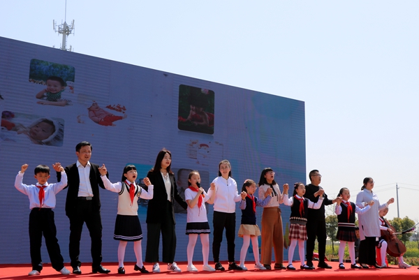 香草湾的大舞台洋溢着节日的气氛,欢快音乐在舞台上空回响。10点整,仪式正式开始,全体队员齐唱《中国少年先锋队队歌》。熊晓芳、徐静、李晨玮三位教师引领全体师生回忆三年来的点滴成长故事,学生们给老师敬礼、献花,表达对老师深深的谢意。