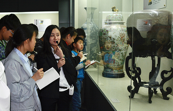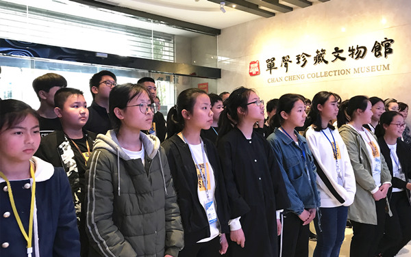 一进展馆,同学们就被陈列在馆内的珍贵藏品深深吸引,翡翠台屏、千手观音象牙雕、张大千、齐白石的书画……大家围着讲解员问这问那,有的边听边记录,有的还用手机拍下了自己喜欢的藏品。从讲解员的讲解中,同学们了解了每件藏品背后的故事,赞叹单声先生的爱国爱乡情怀,表示自己长大后像单爷爷一样,能为家乡尽一份力。