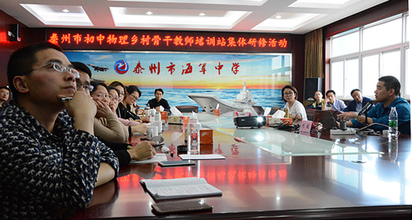 4月20日下午,泰州市乡村物理教师培育站集体研修活动在地处海陵区的海军中学举行,来自姜堰、兴化等四市两区二十余名物理教师参加了活动。