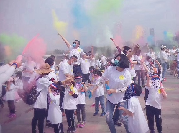 泰和幼儿园举办首届亲子彩虹跑 来源:泰和幼儿园 作者:丁春梅 发布时间:2018-04-22 浏览次数: 次 【字体:小 大】 4月21日,泰和幼儿园组织185个家庭来到天德湖公园举办首届亲子彩虹跑活动。大家环湖奔跑,全程2.8公里。奔跑中,爸爸、妈妈们有的拉着宝贝,有的跟着宝贝,把彩色的粉末洒上天空,欢声笑语响彻云霄。 分享到: 【打印正文】 相关内容