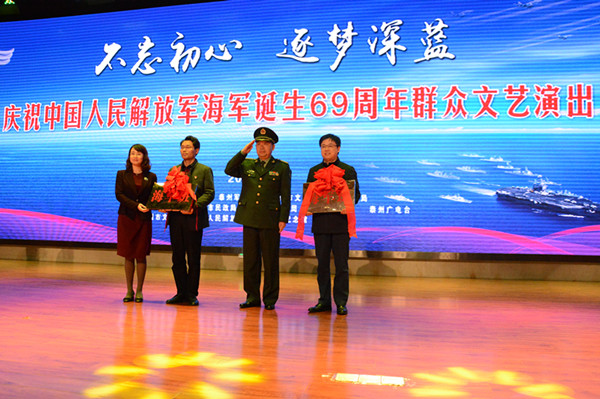 4月23日上午,泰州军分区司令员韩涛、泰州市人民政府副市长王学锋在庆祝中国人民解放军海军诞生69周年活动中分别为泰州市海军中学2017届的两个“海军班”授牌。