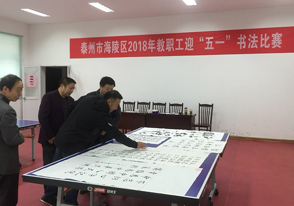 4月23日,区教育工会举办以“不忘初心,牢记使命,共筑中国梦”为主题的教职工迎“五一”书法比赛。活动主办方共收到区属中小学、幼儿园教职工的书法作品近50幅,经专家评审,沈毅中学刘荣淦、苏陈中学唐俊方、二附中张星婷3名教师的作品获一等奖,海陵学校杨欢等5名教师的作品获二等奖,城东中心小学王旭峰等6名教师的作品获三等奖。