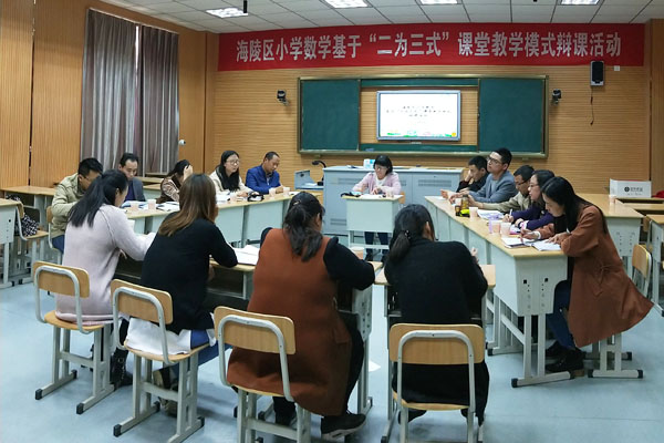 海陵区开展第二次小学数学“二为三式”课堂教学模式辩课活动