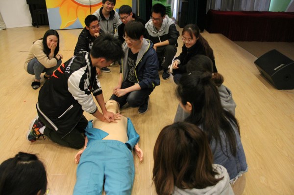 在场的家长、老师在仲卫东的指导和纠正下积极练习,很快掌握了胸外按压、人工呼吸的动作要领。