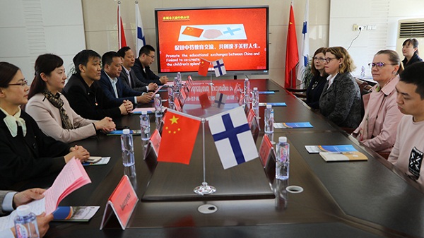 欢迎会上,校长郑晓彤介绍了学校的基本概况、办学理念、办学特色、教学追求方面的情况。SeijaNyholm表示,郑校长的介绍使她加深了对大浦小学的了解,她发现两校在注重培养学生的独立思考能力和创造性思维等诸多方面有相似之处,合作前景十分广阔。随后,双方就今后如何有效开展学生交流、教师交流、学术研讨等话题展开了讨论。陈荣说,芬兰的教育成就举世瞩目,“平等对待每一名学生”,“为了孩子的美好人生”等教育理念和相关的做法非常值得学习。他希望通过此次考察交流活动,进一步促进两校建立起交流学习机制,为两校师生的共同发展打造更加造宽广的舞台,使两校的友谊之树枝繁叶茂、硕果累累。