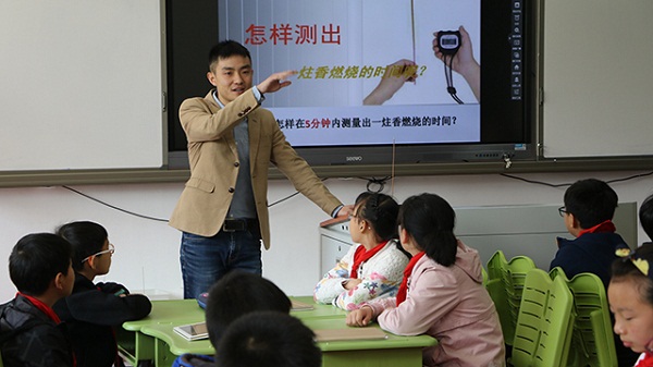 欢迎仪式后,双方教师走进Ipad教室,共同观摩了大浦小学陈辉老师上的《时间》一课。课后,两校教师进行了简短研讨,代表团对该课所涵盖的中外文化,古今科技以及运用网络开展学习活动表示肯定。同时,代表团的艺术老师Päivi Huhtinen介绍了他们学校开展环保科技周的活动情况。
