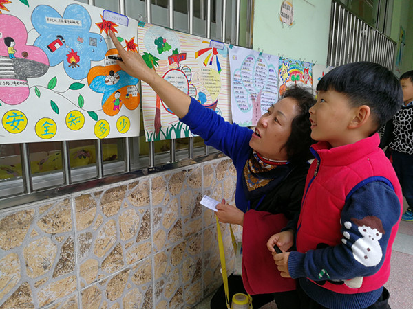老师讲得再多,不如幼儿自己动手留下的印象深刻。近日,儿教中心开展了亲子绘制“健康成长 安全护航”画报评比活动。活动得到了家长们的大力支持,在一周的时间内,亲子共同设计制作出近百份主题鲜明、生动有趣的画报,内容涵盖了消防、交通、防震、防溺水等方方面面的安全内容。4月26日,幼儿园将画报悬挂在操场、走廊展出,邀请小朋友和家长共同评选优秀作品。园长黄秋香说:“亲子构思制作的过程 就是深入学习的过程,评选的过程又是再学习的过程,我们举办这个活动就是要让孩子把安全观念深深地印刻在脑海里,应用到生活中。”