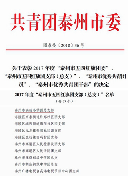 实验小学团总支荣获2017年度“泰州市五四红旗团总支”称号 来源:实验小学 作者:杨智 发布时间:2018-05-10 浏览次数: 次 【字体:小 大】 日前,从团市委传来喜讯,实验小学团总支荣获2017年度“泰州市五四红旗团总支”称号。 近年来,该校团总支紧扣学校中心工作,加强团总支的自身建设,认真落实上级团委的工作部署,积极开展各类活动。通过活动凝聚青年、锻炼青年,充分发挥青年教师的智慧和力量,展现年轻人良好的精神面貌。 该校团员教师表示,将珍惜荣誉、再接再厉,继续在工作中创造新的业绩,为学校的发展贡献青春力量。 分享到: 【打印正文】 相关内容