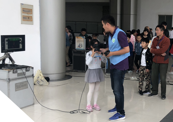 “本次活动我们面向渔行实验学校及少年宫学员,特邀了“张家港号”科普大篷车第三次走进少年宫。这次大篷车给孩子们带来了不少新项目,“激光传声”、“半导体制冷”、“摩尔条纹”等40项科技项目”少年宫办公室主任邱洪生介绍说。
