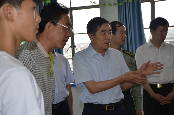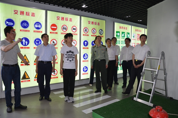 省民防局领导参观海陵学校民防宣传教育体验馆