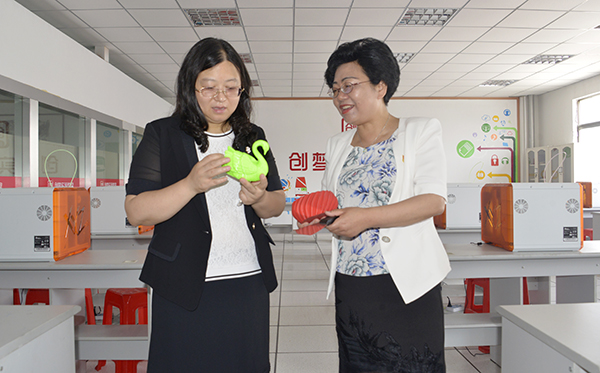 在二附中,刘燕在欣赏学生的3D打印作品。