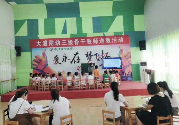 大浦附幼骨干教师到民办幼儿园送教 来源:秋雪湖幼儿园 作者:朱旭芸 发布时间:2018-06-09 浏览次数: 次 【字体:小 大】 6月8日上午,大浦附幼三名骨干教师到秋雪湖幼儿园送教。活动中,大浦附幼的副园长胡振芳和李陆丹、曹静两位老师分别上了语言活动《夏天的歌》、科学活动《蒜和葱》、音乐活动《小老鼠打电话》。课后,开展了教学研讨活动,大家或谈感受、或提建议、或分享教学技能,取得良好的教研效果。 分享到: 【打印正文】 相关内容