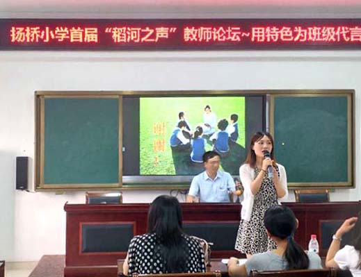 扬桥小学举办首届“稻河之声”班主任论坛活动 来源:扬桥小学 作者:高娟 发布时间:2018-06-15 浏览次数: 次 【字体:小 大】 6月13日下午,扬桥小学举办首届“稻河之声”教师论坛活动。论坛活动中,各年级选派一名班主任代表上台演说。他们饱含热情,叙说各自的工作,表达他们的对学生的爱心、呵护。校长刘元海对老师们的交流给予了很高的评价,他希望其班主任们互相学习,在实践中不断总结,争取把全校的班主任工作越做越好。 分享到: 【打印正文】 相关内容
