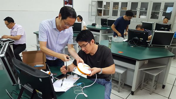 培训中,江苏苏威尔科技有限公司派出4名技术员全程参与培训的服务和指导,技术员缪旭晨详细介绍了有关数字化实验设备的功能、各种传感器的使用方法及注意事项、数据的采集、分析与处理等。