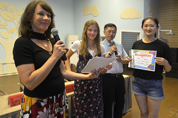 Sharon Moore老师看似随性、随意的教学却饱含情感和智慧。她的情感渗透在每天清晨的问好、临别时的鼓励;她的智慧在于让课堂上的每件事儿都变得有趣,成为促进学员深入学习的催化剂。