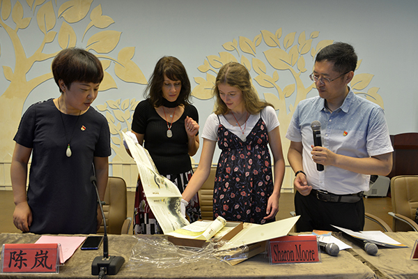 典礼上,两位外籍教师Sharon Moore和Kristin Moore为29名学员一一颁发了结业证书。她们表达了对中国悠久历史的敬仰,对中国文化、传统的尊重,对中国教师勤学友善的赞许。表示回国后要和亲朋分享这段美好的经历,学习、传播中国文化,增进双方友谊。陈岚向两位外籍教师颁发了江苏省引智培训项目培训证书,赠送了绢画“印象泰州”。