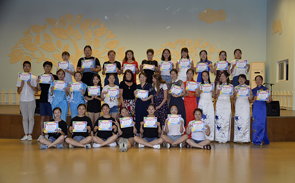 海陵区教师发展中心副主任王新主持结业典礼。结业典礼仪式结束后,学员们为两位外籍教师表演了自编自导的文艺节目,请她们品尝功夫茶,欣赏中国书法和剪纸。