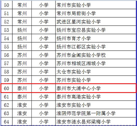 “江苏省教科研先进学校”公示 大浦小学在名单之列