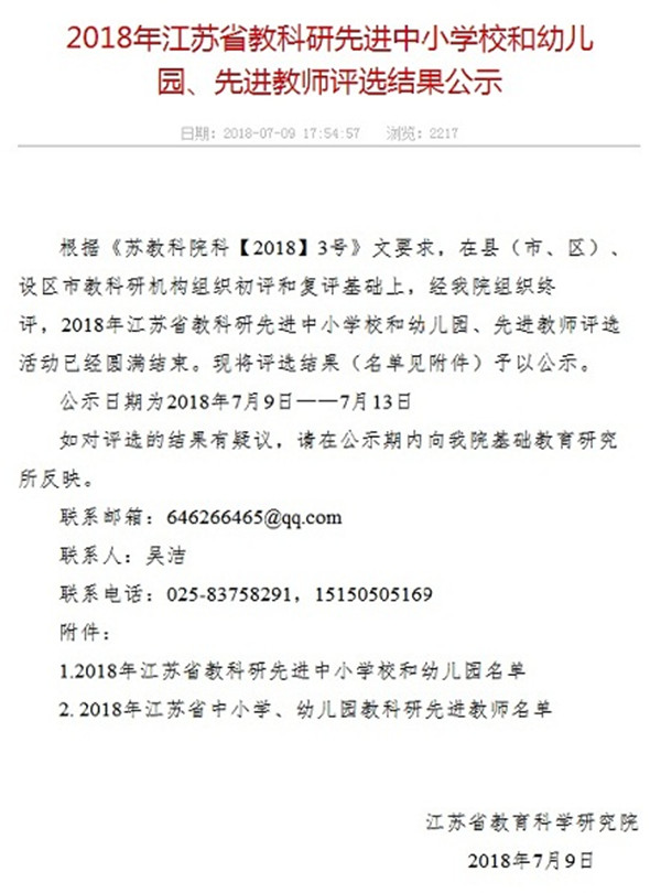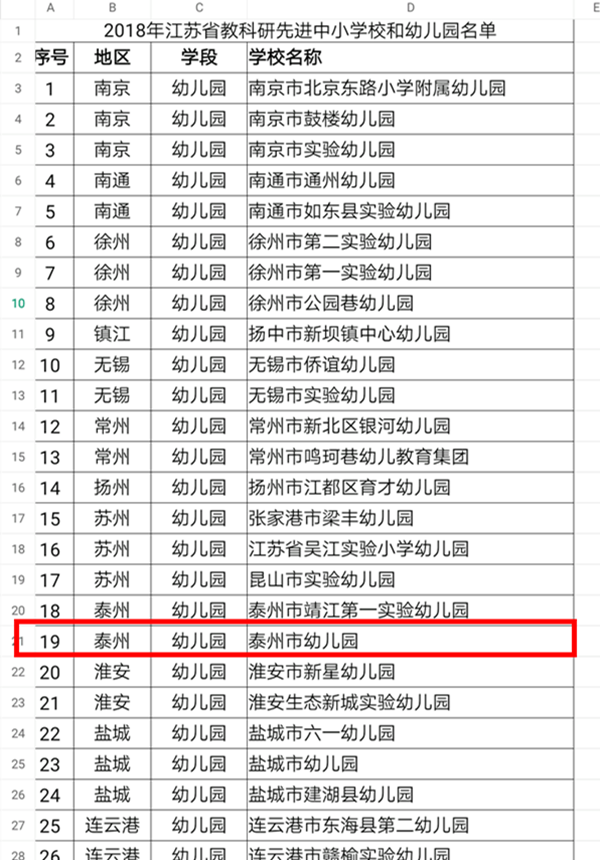 “江苏省教科研先进学校”公示 市幼儿园也在名单之列