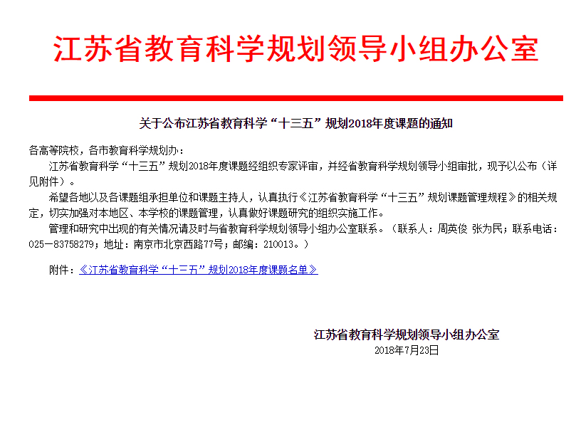 近日,江苏省教育科学规划领导小组办公室公布了“江苏省教育科学‘十三五’规划2018年度课题”,扬桥小学申报的课题“‘成德达才’办学理念下的小学生学习力提升实践研究”获批准立项。