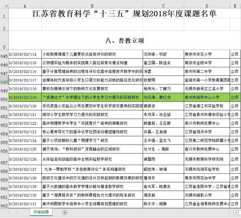 本次课题申报经过了层层筛选,海陵区教师发展中心组织专家从全区各校申报课题中选择22个研究课题择优上报,江苏省教科所组织省外专家打分筛选出三分之一课题作为最终立项课题。
