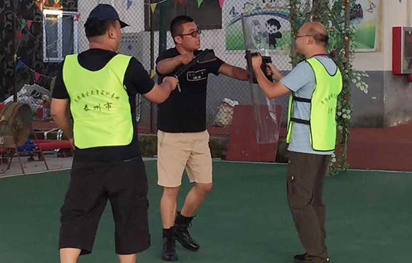 培训现场气氛热烈,老师们认真聆听,不少老师全程拍照记录,生怕遗漏了什么。市幼儿园纪慧老师说:“本次开展的安全教育实训活动,感触最深的一点是以往学校培训基本是以讲座和授课为主,虽然也有实践操作,但受条件和场地的限制,老师们的实践操作更像是‘表演’。这次培训我们以分组对抗的形式进行,学员之间既是伙伴,也是竞争对手。实训不再是走过场,是让老师们尽情发挥,是‘真实践’,那些演练的要点和规范经过全程实践终身不会忘记,就像郭教官说的那样,将‘应急行动规则的记忆转化为肌肉记忆。’”