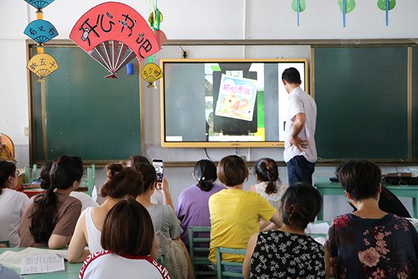 今年暑假九龙幼儿园投资70多万元建成校园网,为每个班级配备了多媒体一体机。如何让信息化的教学设备发挥最大功效,该园举办了相应的培训。老师们纷纷举起手机拍摄主讲老师的每一步操作,工作了近30年的老教师也和大家一起拿着纸笔认真记录。