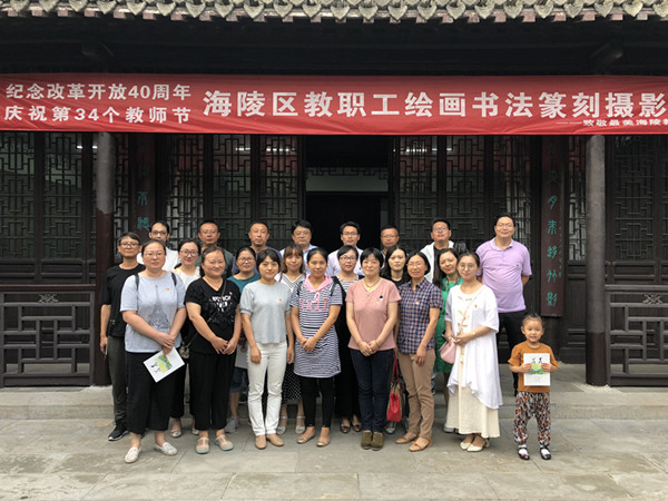 9月11日下午,海军中学党支部组织全体在职党员参观了海陵区教职工绘画书法篆刻摄影展,致敬最美海陵教育人。